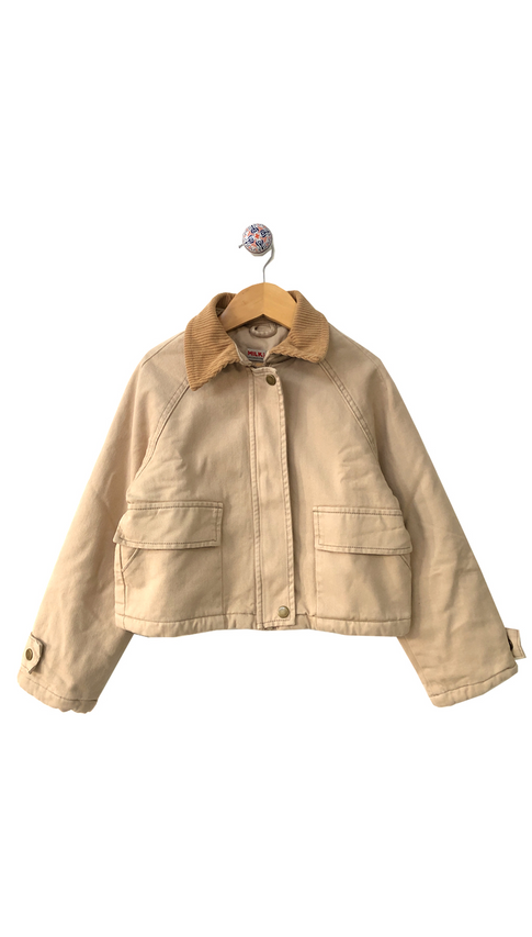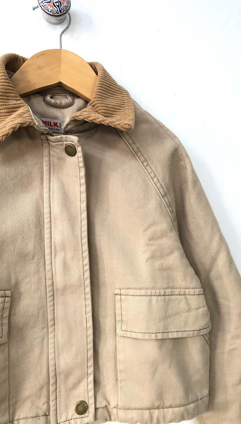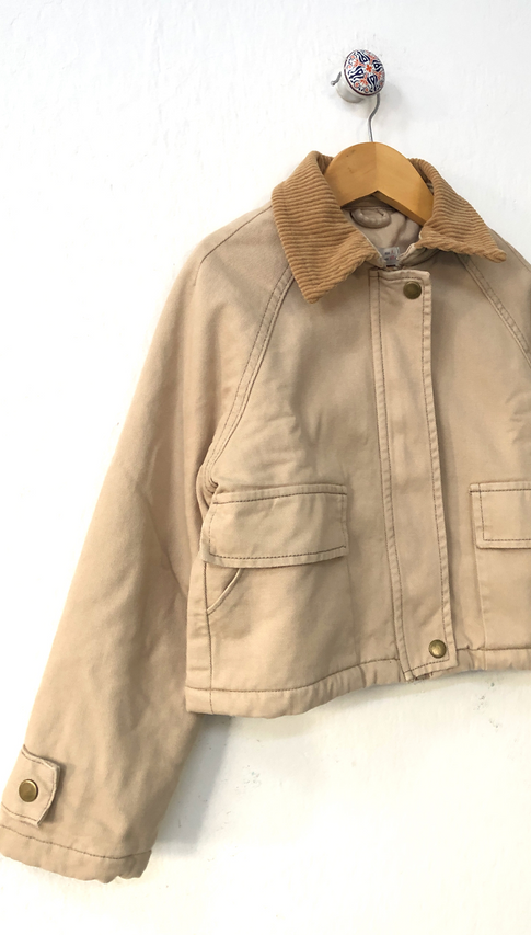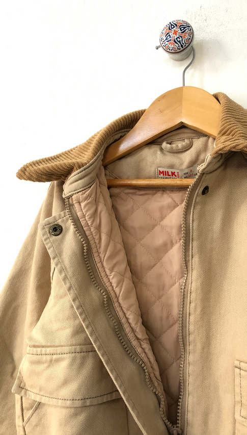 Chaqueta de gabardina de algodón con interior forrado en matellase y cuello de corderoy. Esta es una chaqueta con estilo clásico pero de tendencia. Adaptable a muchos looks 🏕️