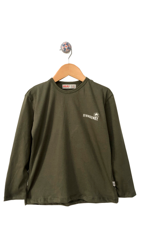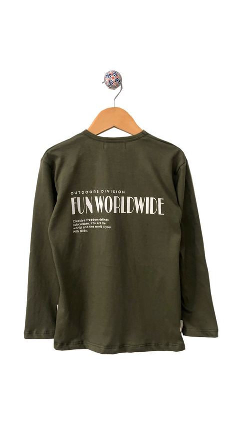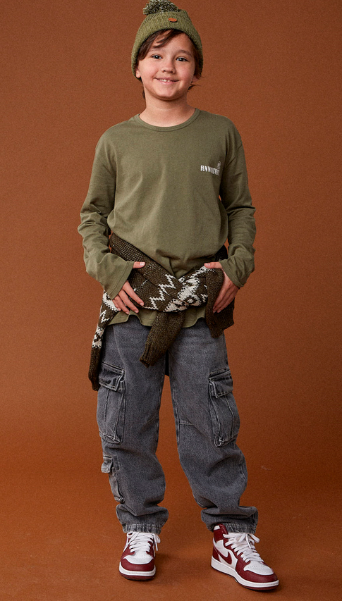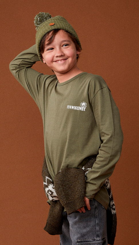 Remera de de algodón con estampa en frente y espalda. Una remera pensada para todas las actividades del chicos los dias más frios.