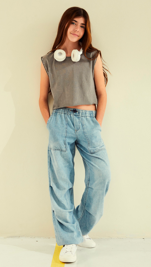 Parachute de jean liviano. Una nueva opcion para las que aman los pantalones parachutes