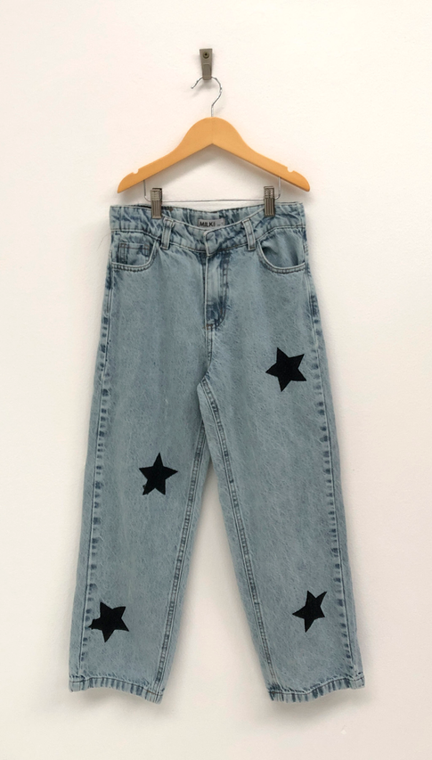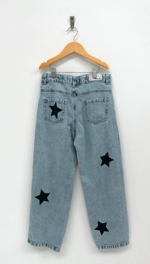 Jean recto rigido over con estampa. Este baggy tiene toda la onda y sus estrellas son ultima tendecia ⭐🖤