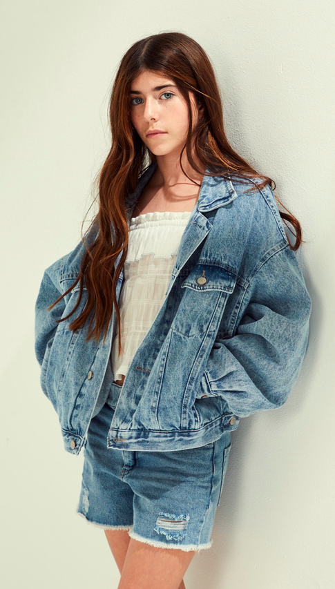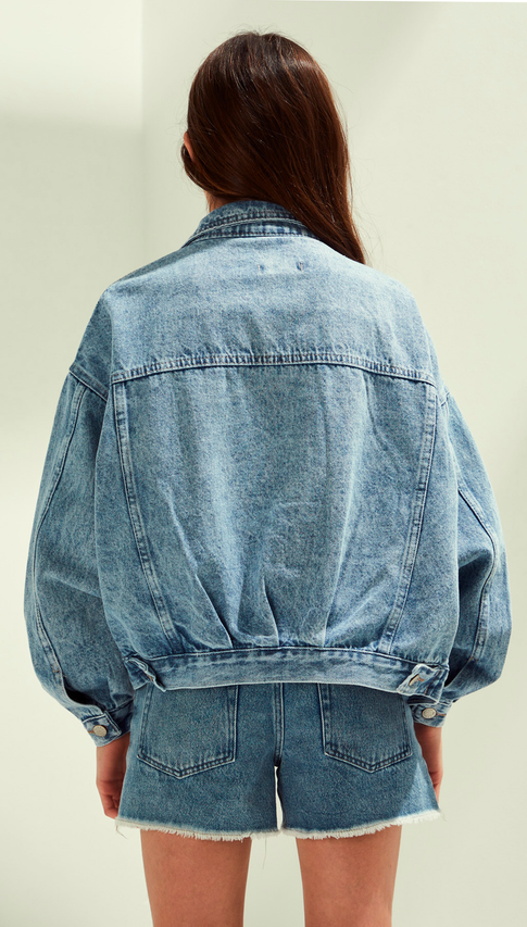 Campera de jean oversize. Fit relajado para un look cómodo pero mega canchero. El básico que levanta cualquier outfit y te acompaña en mil planes, de día o de noche.
