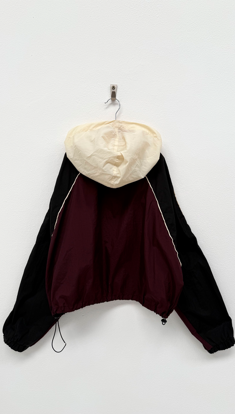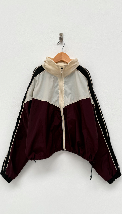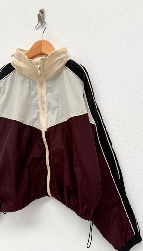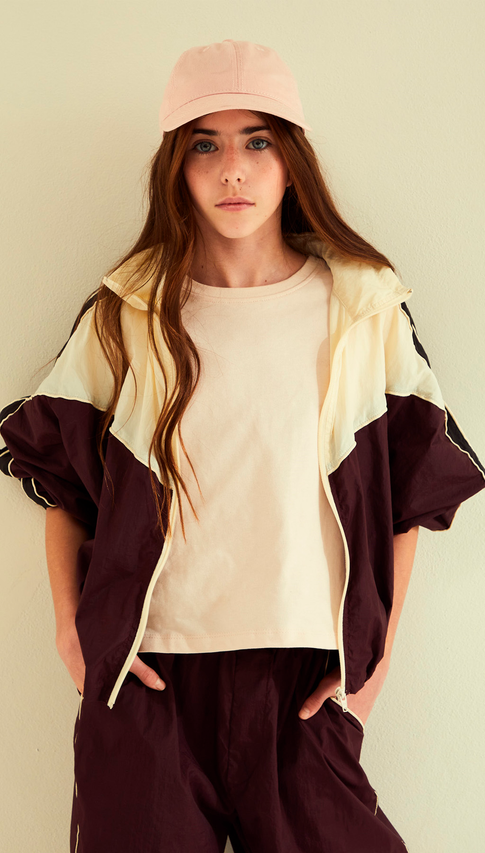 Campera de nylon combinada con capucha. Esta campera tiene un cierre para guardar su capucha, es liviana con una onda retro. Perfecta para usar con jeans, joggers y hace perfecto match con el pantalon CADIZ