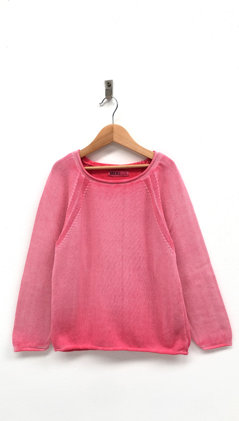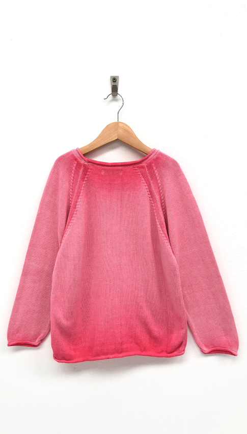 Sweater de algodon teñido degradee. Un must-have lleno de onda: sweater liviano con efecto degradé en tonos de rosa, que lo hace súper divertido y original. Una prenda fresca, versátil y con ese toque de color que ilumina cualquier look.