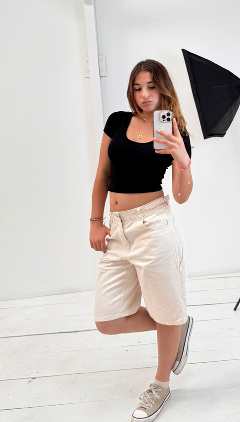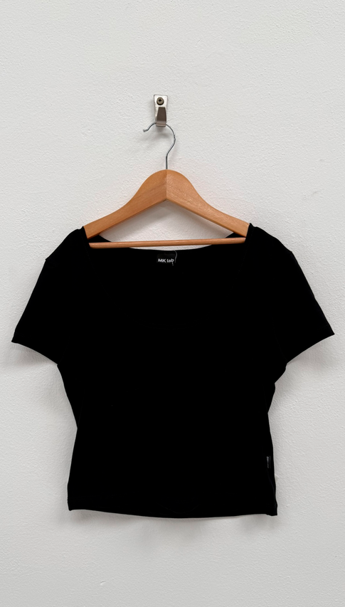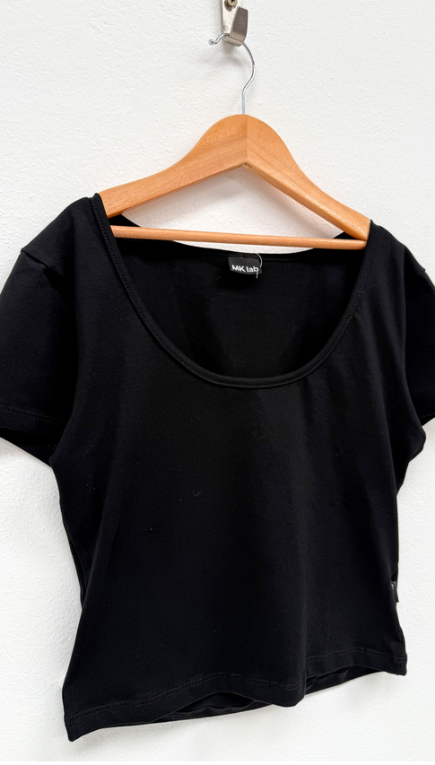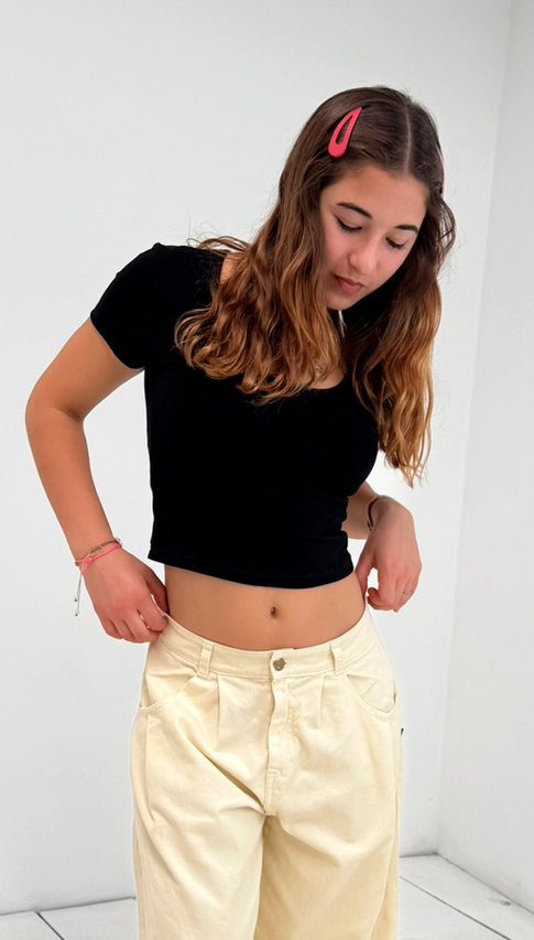 Remera manga corta de algodón con lycra. Una remera para usar siempre, de largo por debajo de la cintura ideal para usar con jeans, shorts y bermudas tiro bajo