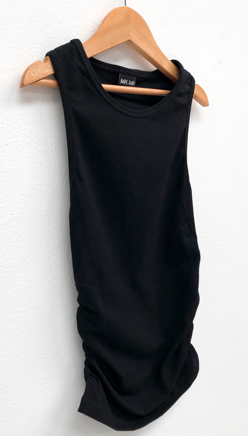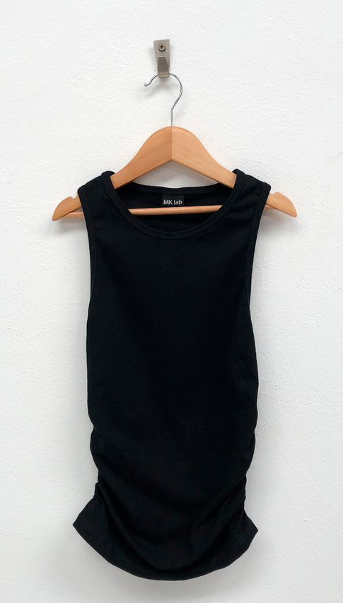 Musculosa de alogdón con lycra, al cuerpo con frunces en los laterales. El básico que no es tan básico. Su detalle de frunces a los costados le da ese toque canchero que levanta cualquier look. Viene en blanco y negro dos clásicos infaltables del verano. MK lab: S, M, L