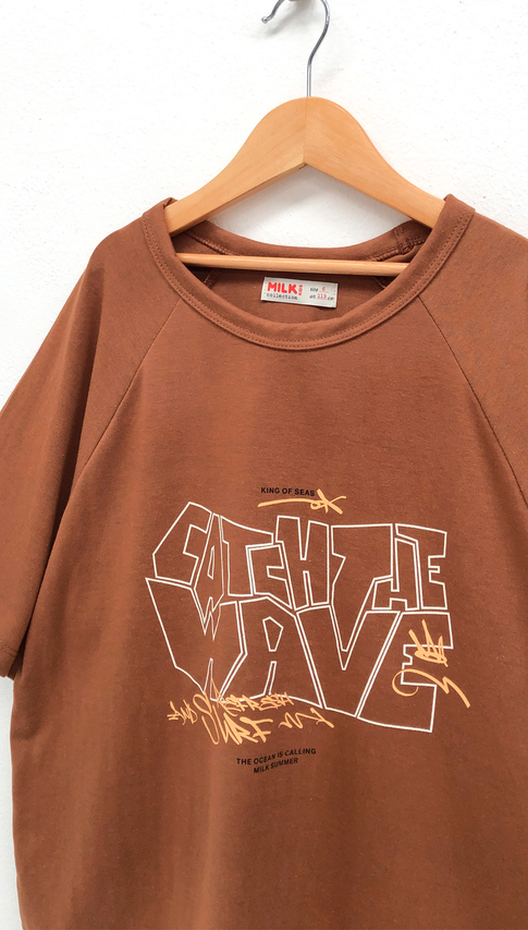 Remera manga rangla oversize con estampa en el fente. Para usar con shorts y bermudas