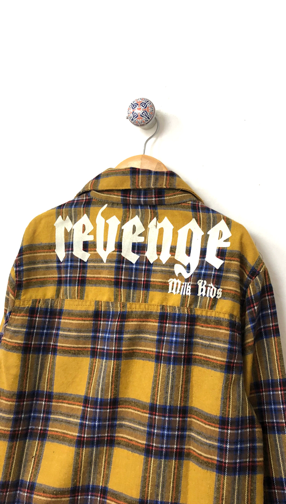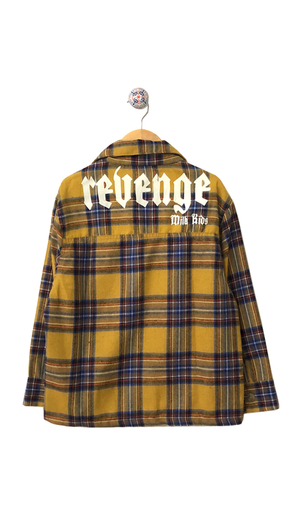 Camisa de viyela escosesa con estampa en la espalda. Esta camisa es ideal para agregar un toque de abrigo y un toque de modernidad a cualquier look de niños y niñas 💛