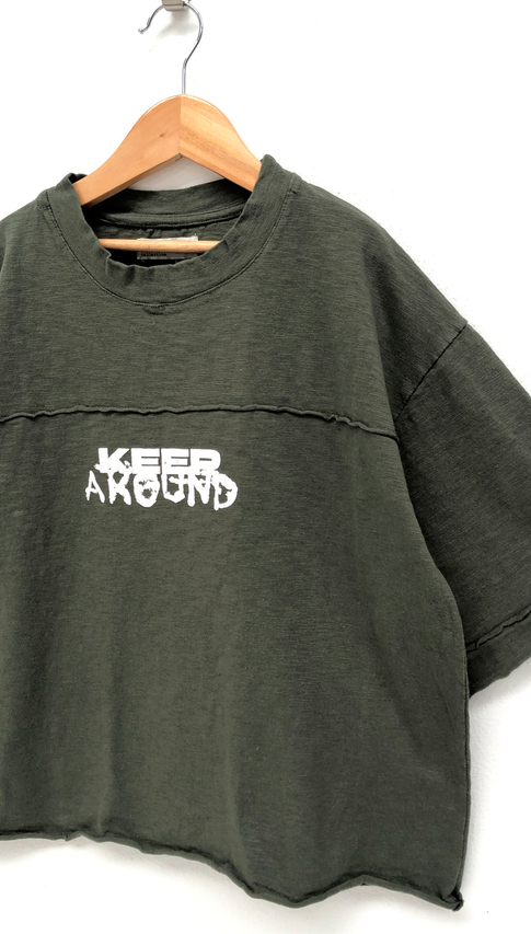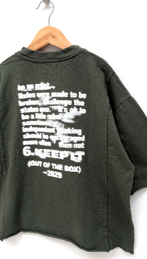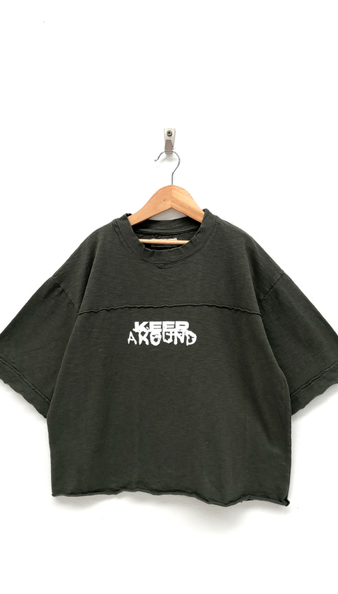 Remera de flamme pesado con recortes. Esta es una remera estilo boxy fit, de las mas cancheras de esta temporada