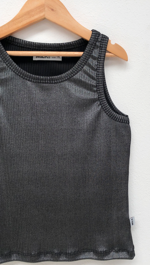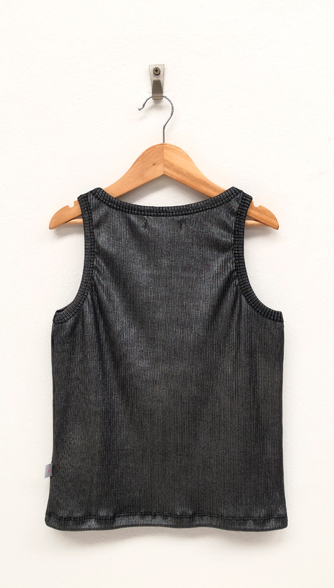 Musulosa de morley con foil. Esta músculosa es la prenda que te salca siempre, cómoda, cool y con el brillo justo. Para usar con jeans, minis o tu short favorito. Dos colores, mil looks. ✨