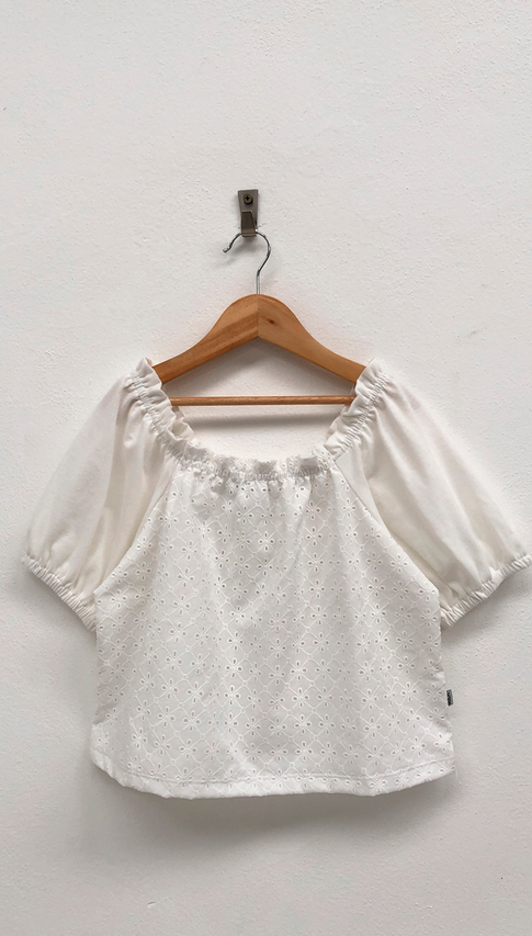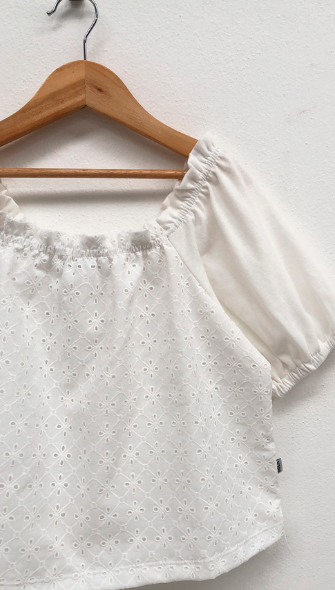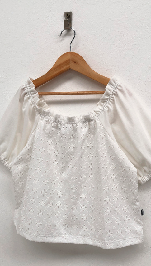 Delicada, fresca y con mucha onda. Broderie + mangas abullonadas = amor a primera vista 🤍