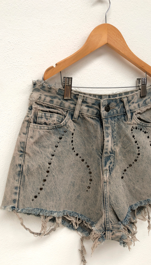 Short de denim con tachas termoselladas. Ideal para todas las chicas teen que quieran estar cancheras este verano.