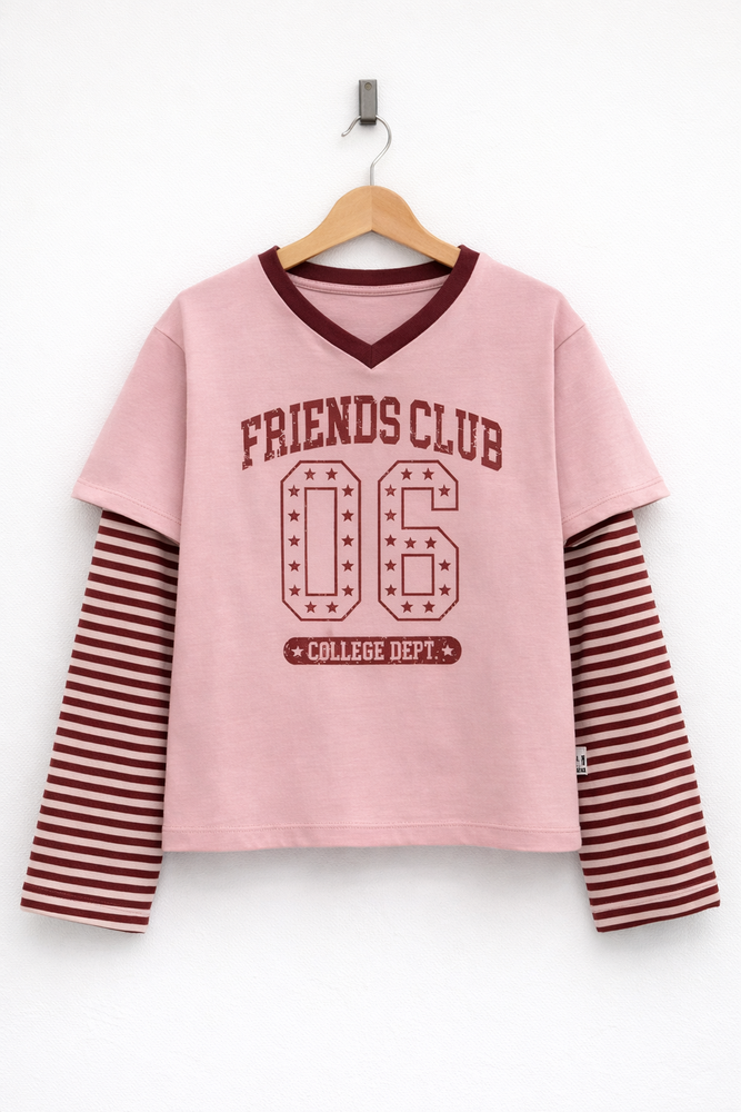 Remera estampada de jersey de algodón con mangas raydas combinadas
