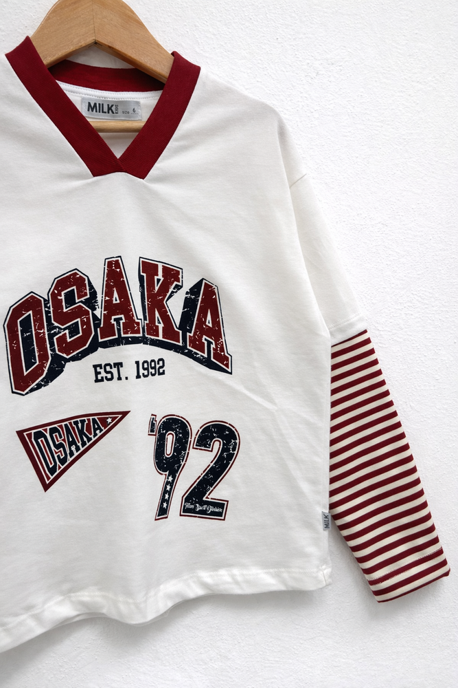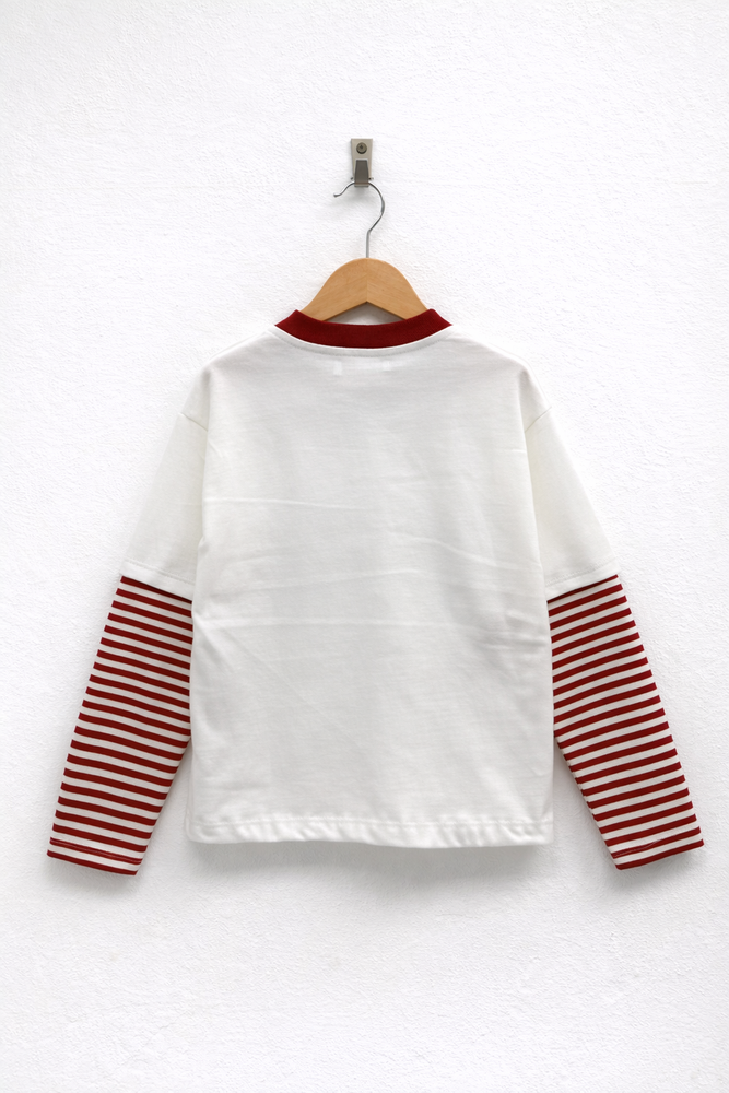 Remera estampada de jersey de algodón con mangas raydas combinadas