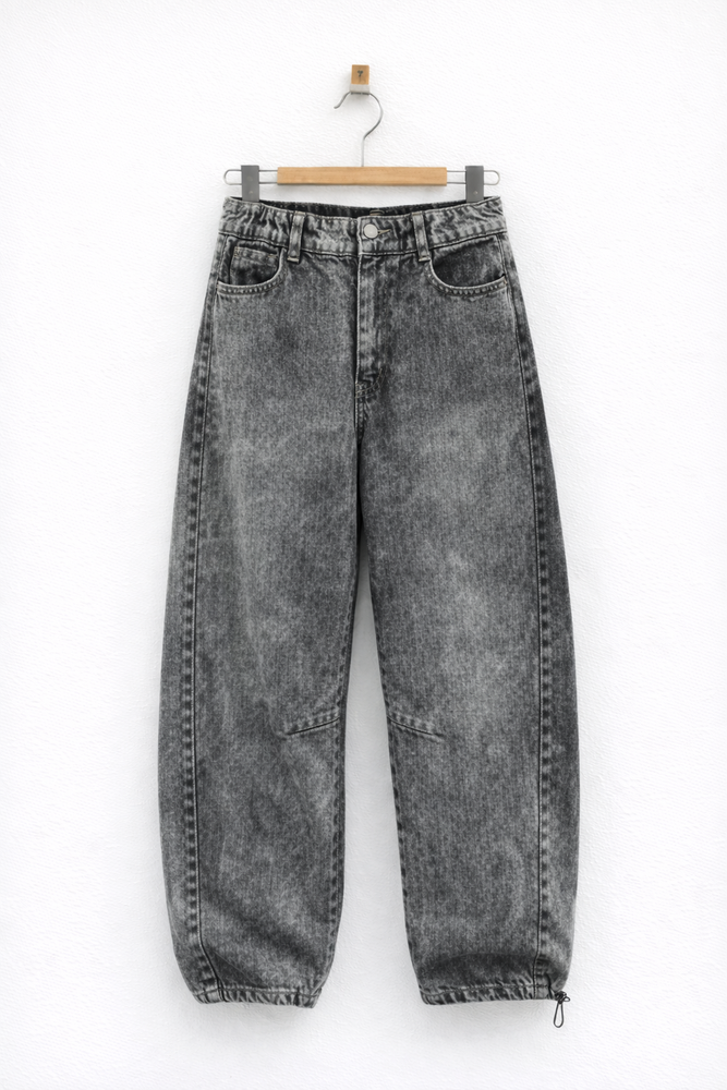Jean estilo barrel con pinzas.