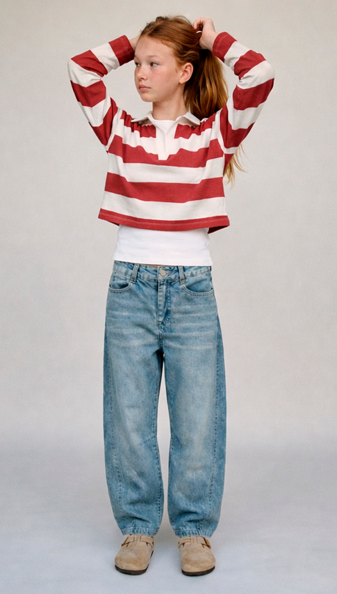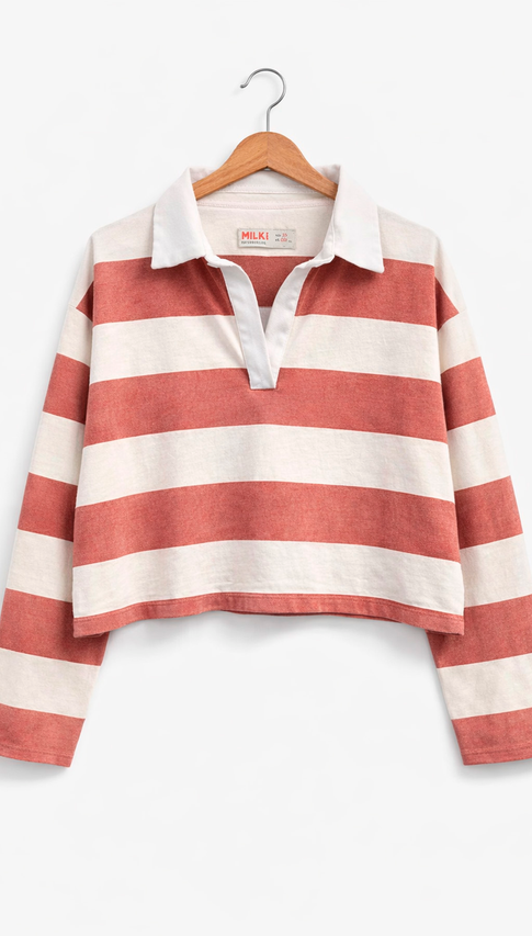 Chomba de jersey rayado.